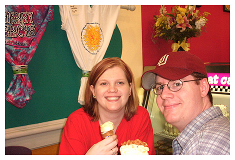 photo caption: The two Tobyns at Ben & Jerry's on July the 4th, 2002