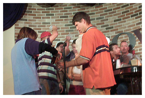 photo caption: The cheap stuff still gets you drunk -- so away he poured!