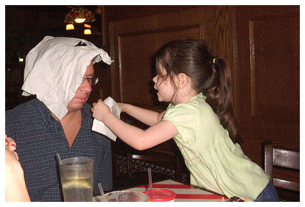 photo caption: Somehow Mike unwittingly became Caroline's first fashion design victim of the nite