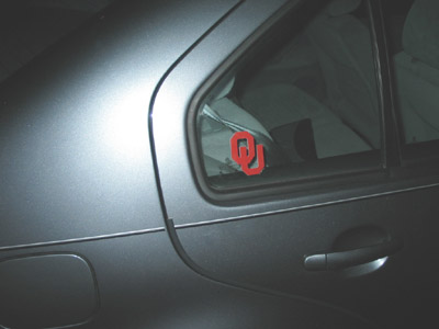 photo caption: Of course we made sure the car was immediately "Sooner-ized"