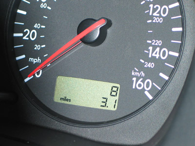 photo caption: We shot a quick photo of the odometer -- only eight miles when we got it!