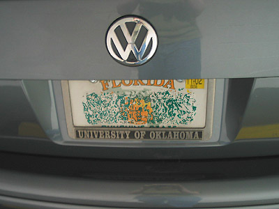 photo caption: They already had our OU vanity plate on the car waiting for us